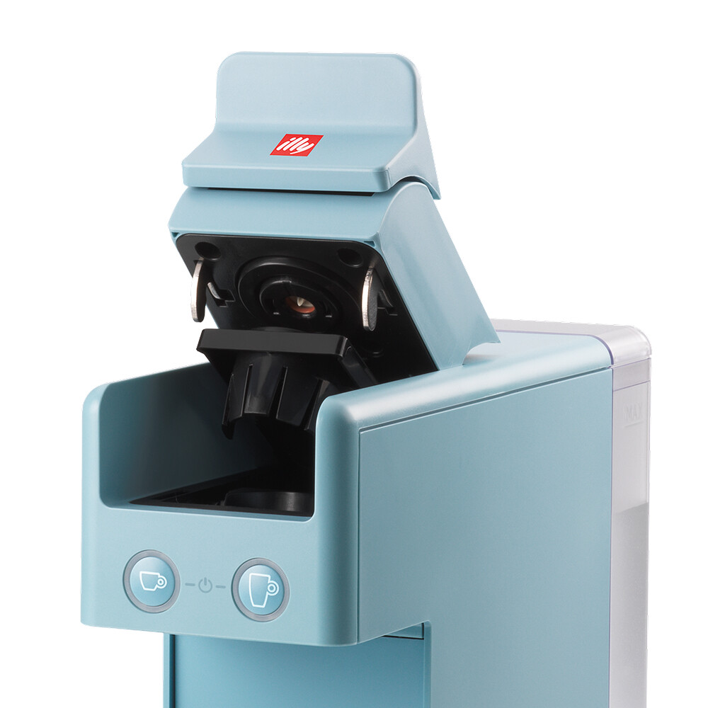 La Y3.3 Iperespresso azul pastel, diseñada por el reconocido arquitecto Piero Lissoni, combina un estilo elegante y minimalista con la practicidad de una máquina compacta y versátil: